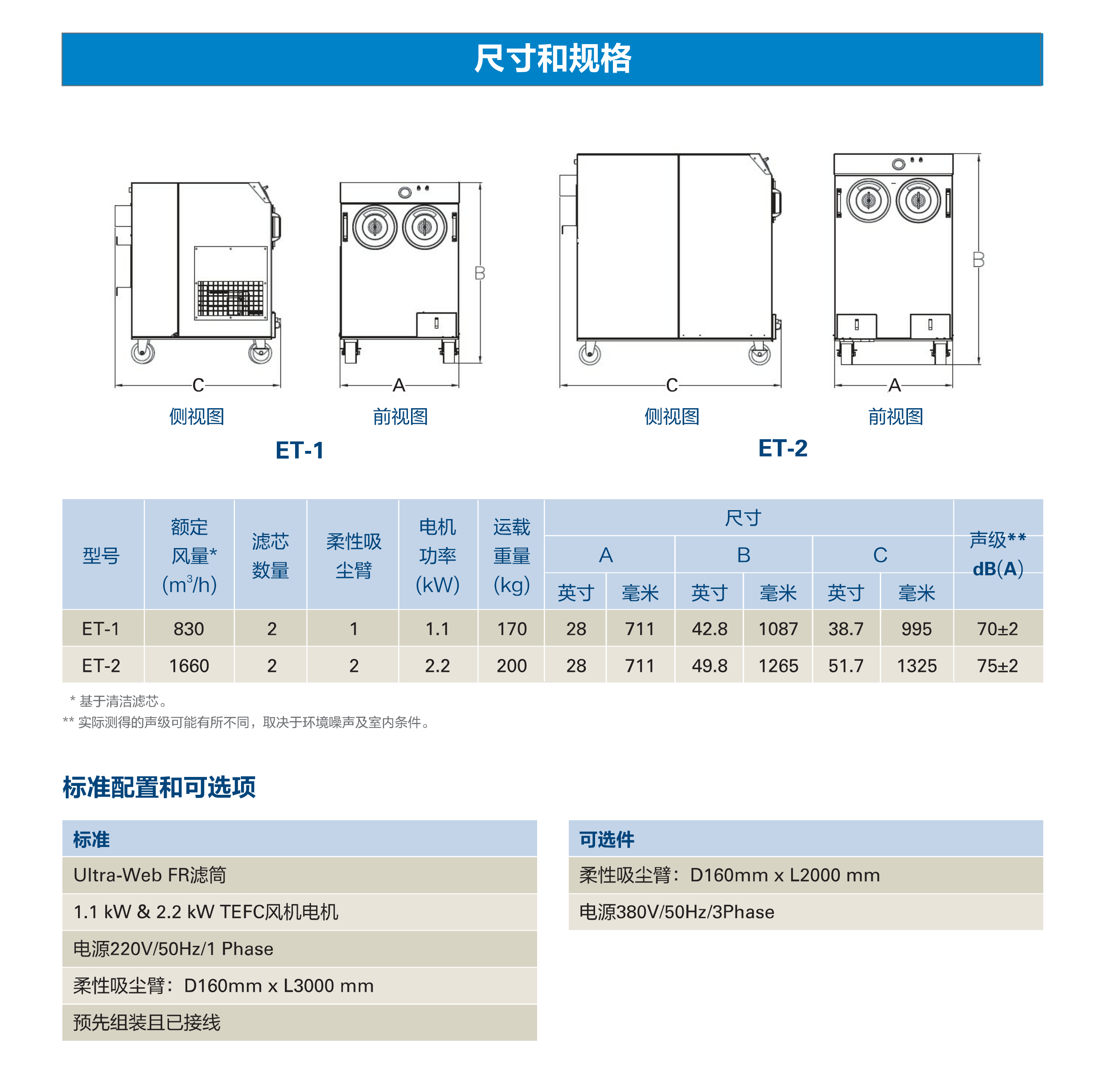 ET-1 & ET-2小巧的便携式焊烟除尘器,可有效过滤焊接和打磨应用产生的烟雾、粉尘和焊烟。