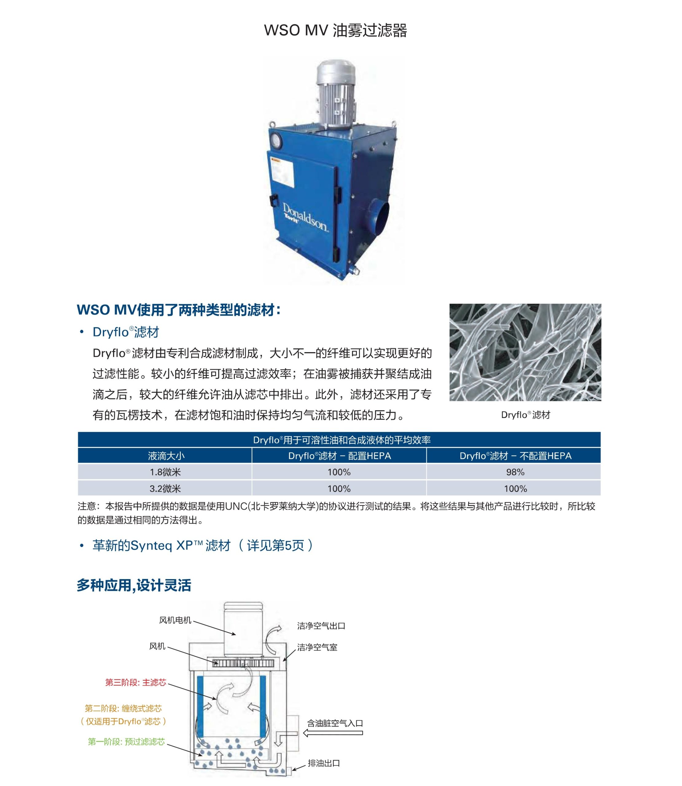 Donaldson® Torit® 的 WSO MV 油雾过滤器是有效且高效的油雾过滤系统,通过在一个可安装在机器上的过滤器来捕集冷却液雾和机加工油雾,提供更高效的工作环境。