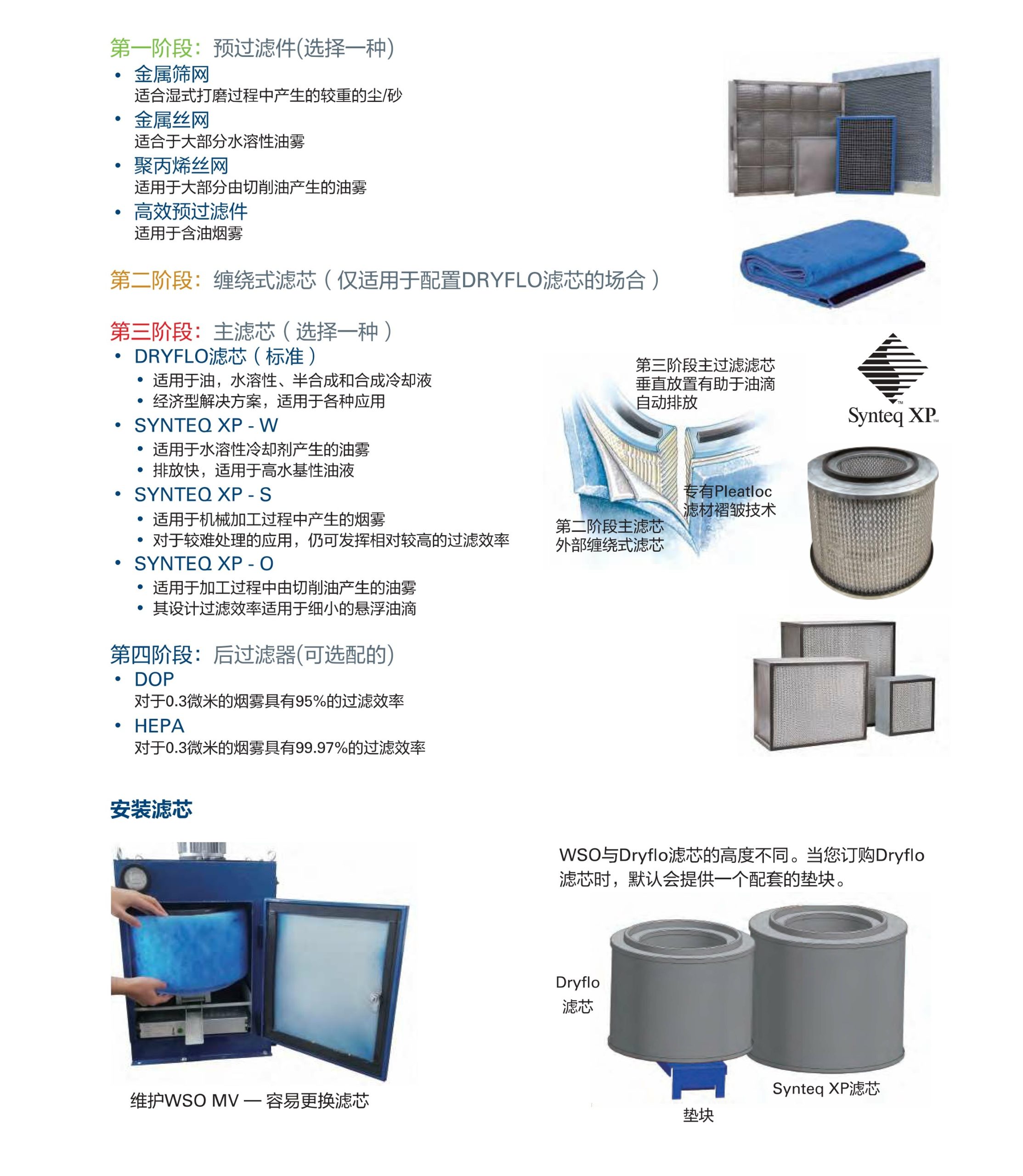 WSO MV 提供高性能的技术,以及简便且可预测的维护。 只需简单地更换不同滤芯即可对 WSO MV进行改进以适应不同的油雾工况,从而精简操作、节约成本并使工厂空气更洁净。